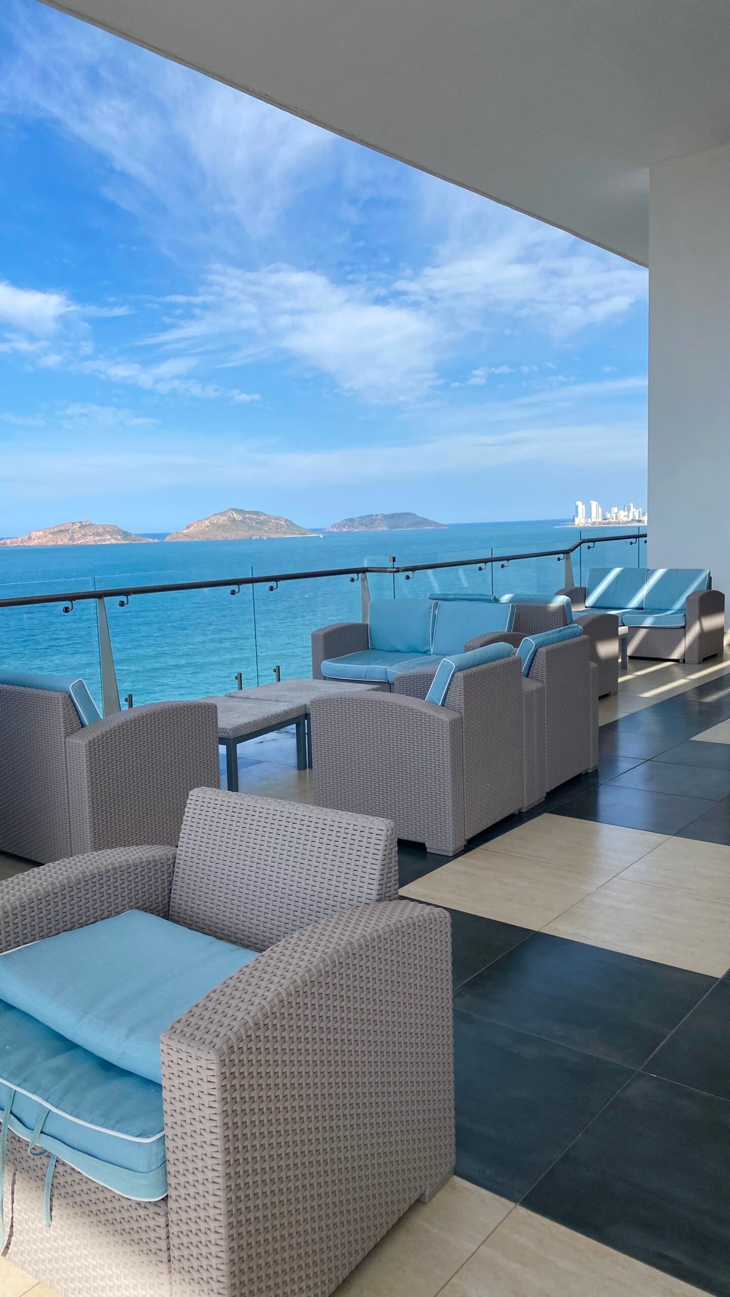 Disfruta su terraza con vista al mar, estacionamiento y amenidades exclusivas como alberca, gimnasio, sauna, cancha de squash, jacuzzi y áreas de asadores.
