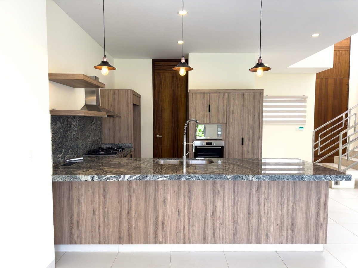 Moderna residencia de 3 recámaras y 3 baños completos, con un diseño arquitectónico contemporáneo y acabados de lujo. Amplias áreas de sala, comedor y una cocina integral moderna, iluminadas por grandes ventanales que aportan luz natural.