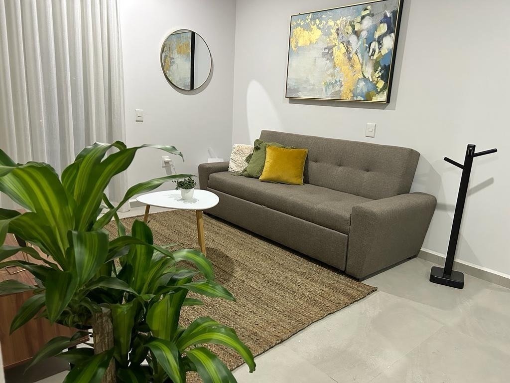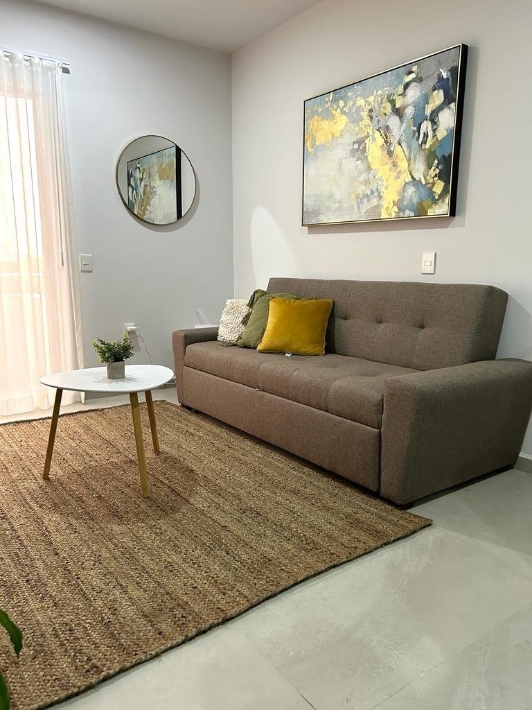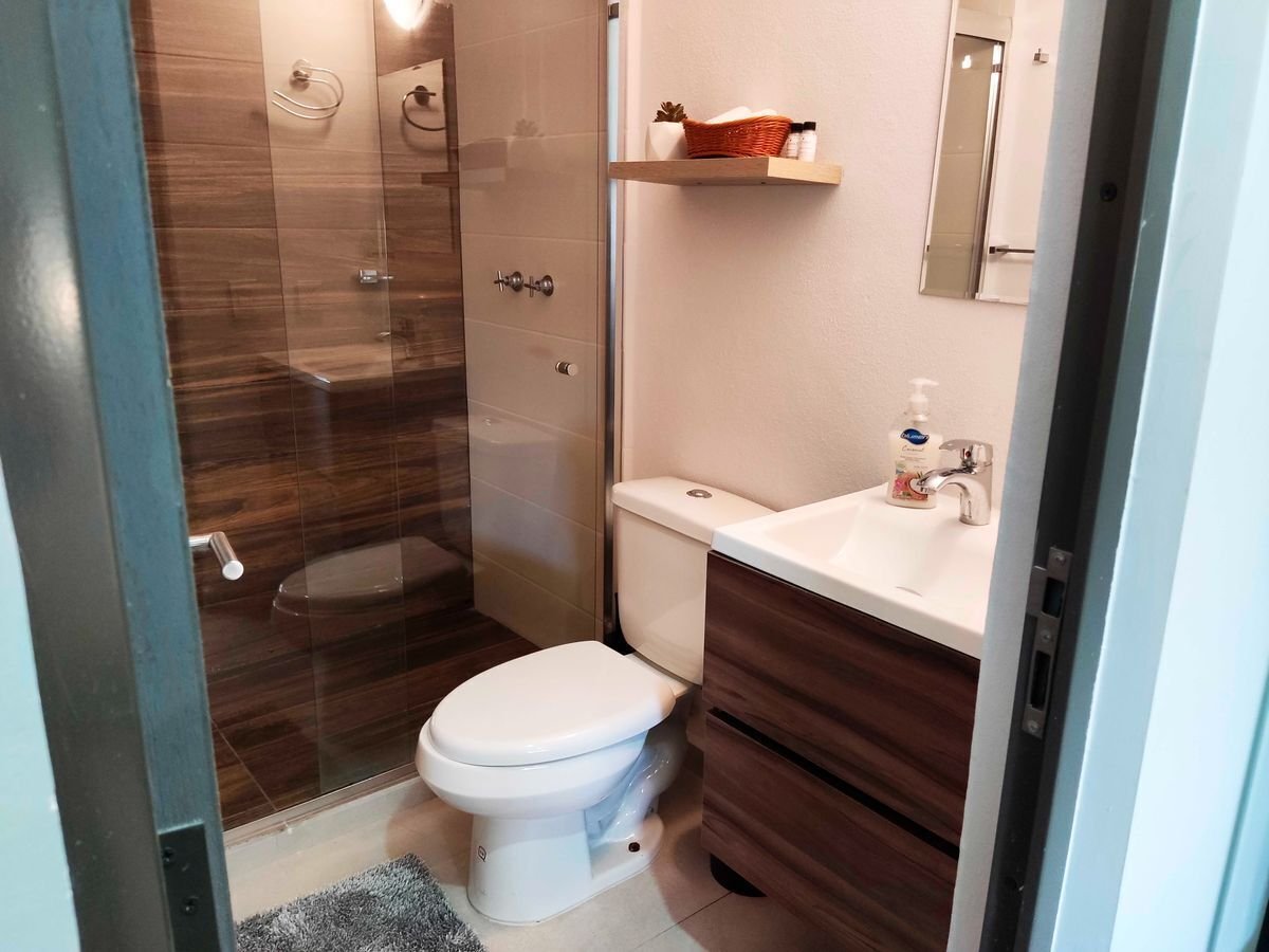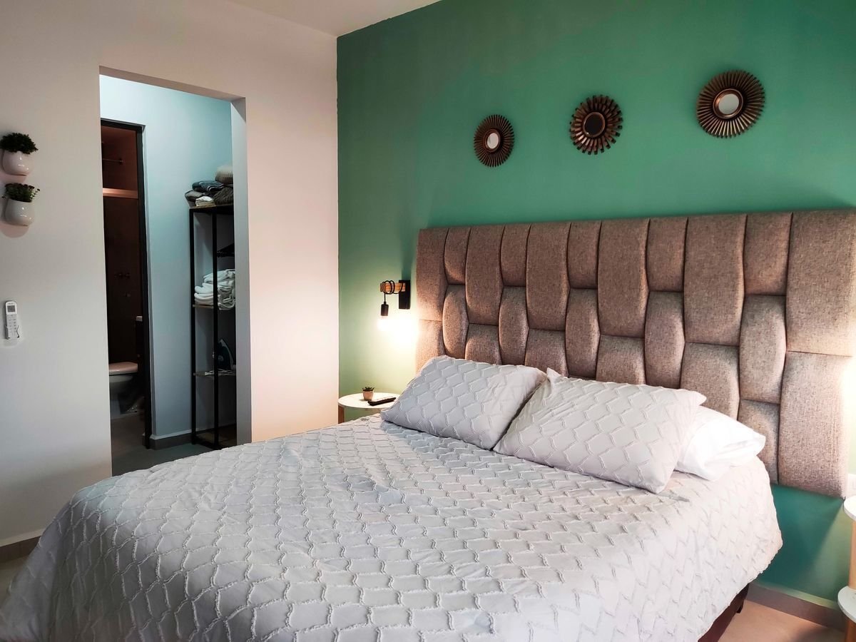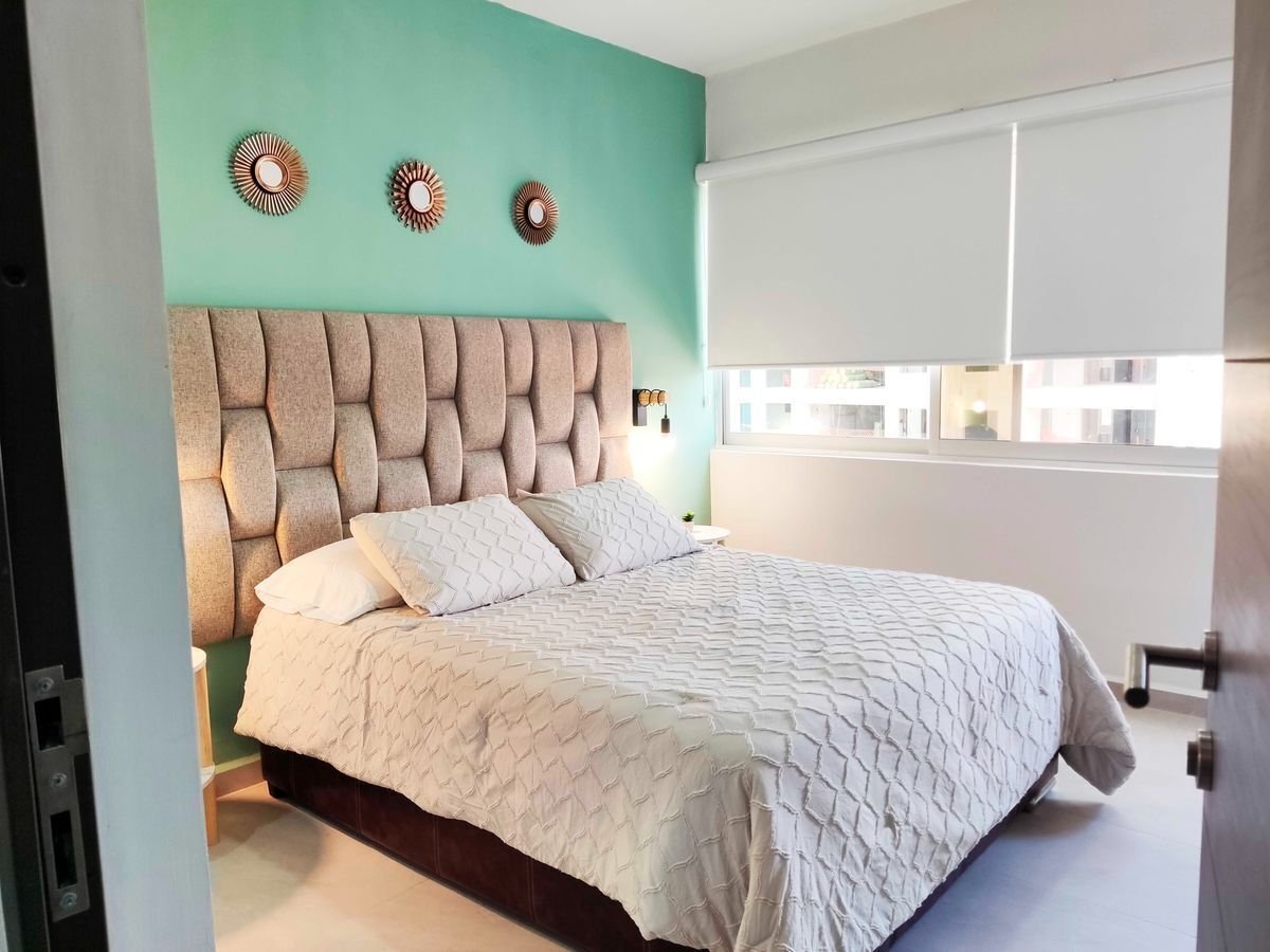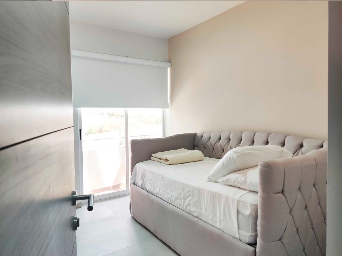 Elegante departamento con 2 sofás camas, recámara principal con cama Queen Size y cocina equipada (microondas, campana, parrilla, refrigerador, licuadora y tostadora). Sala con vista a la laguna artificial de 5,000 m².